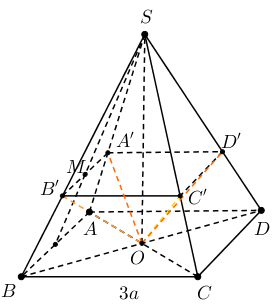 Cho hình chóp đều \(S.ABCD\) có tất cả các cạnh đều bằng \(3a\) và \(O\) là tâm của đáy. Gọi
