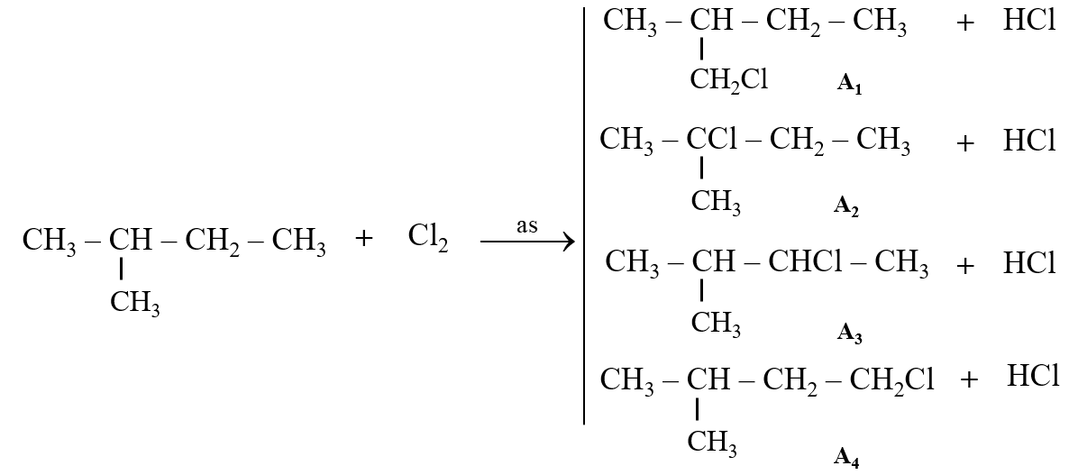 3) Q1 tham gia phản ứng clo hóa theo tỉ lệ 1 : 1 (thay thế một nguyên tử H bằng một nguyên tử Cl) tương tự metan để tạo ra các dẫn xuất monoclo. Khả năng thế nguyên tử H liên kết với các nguyên từ cacbon bậc khác nhau là khác nhau.