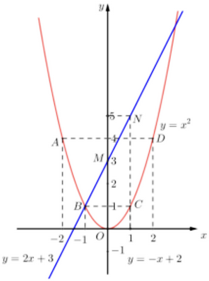 Trong mặt phẳng tọa độ \(Oxy\), cho parabol \(\left( P \right):y = {x^2}\) và đường thẳng \(\left( d \right):y = 2x + 3\).