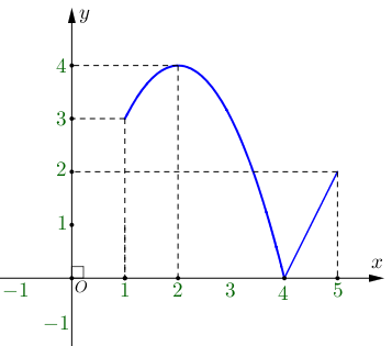 Cho hàm số \(y = f\left( x \right)\) liên tục trên đoạn \(\left[ {1;5} \right]\) và có đồ thị như