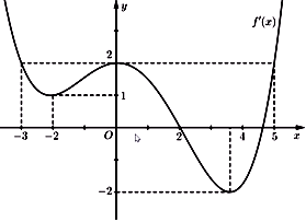 Cho hàm đa thức bậc năm \(y = f(x)\) có đồ thị \(f'(x)\) như hình vẽ.