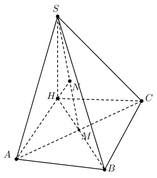 Tìm H là chân đường vuông góc hạ từ S xuống (ABC) từ đó tính SH và thể tích hình chóp