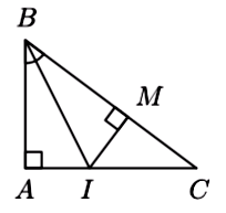 Cho tam giác \(ABC\) vuông tại \(A,\,\,BI\) là đường phân giác trong của \(\angle B,\,\,M\) là chân