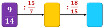 \(\dfrac{9}{{14}}:\dfrac{{15}}{7}:\dfrac{{18}}{{15}} = \dfrac{9}{{14}} \times \dfrac{7}{{15}} \times \dfrac{{15}}{{18}} = \dfrac{{9 \times 7 \times 15}}{{14 \times 15 \times 18}} = \dfrac{{9 \times 7 \times 15}}{{2 \times 7 \times 15 \times 9 \times 2}} = \dfrac{1}{{2 \times 2}} = \dfrac{1}{4}\)