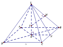 Cho hình chóp tứ giác đều \(S.ABCD\) có góc giữa mặt phẳng chứa mặt bên và mặt phẳng đáy