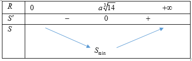 Một cơ sở sản suất đồ gia dụng được đặt hàng làm các chiếc hộp kín hình trụ bằng nhôm đề đựng rượu có thể tích là \(V = 28\pi {a^3}\)\(\left( {a > 0} \right)\). Để tiết kiệm sản suất và mang lại lợi nhuận cao nhất thì cơ sở sẽ sản suất những chiếc hộp hình trụ có bán kính là \(R\) sao cho diện tích nhôm cần dùng là ít nhất. Tìm \(R\)