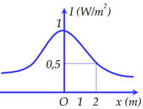 Một thiết bị phát âm có công suất P di chuyển dọc theo trục Ox, một thiết bị thu âm đặt cố định trên trục Oy, khảo sát sự phụ thuộc của cường độ âm thu được theo tọa độ x của thiết bị phát được đồ thị (như hình vẽ). Cho \({I_0} = {10^{ - 12}}\,\,W/{m^2}\). Lấy \({\pi ^2} = 10\). Khi thiết bi phát chuyển động qua vị trí M có x = 4m thì mức cường độ âm thu được gần nhất với giá trị nào sau đây?