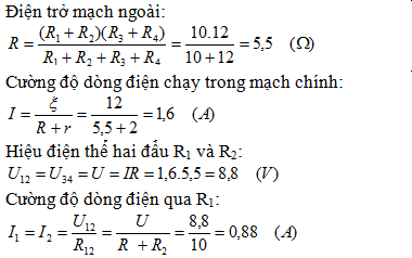 Dành cho chương trình nâng cao Cho mạch điện như hình vẽ R1=4Ω, R2=6Ω R3=5Ω, R4=7Ω Tính