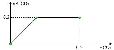 Cho m gam hỗn hợp X (gồm Na, Na2O, K, K2O, Ba và BaO) vào H2O dư, thu được dung dịch Y và 3,36 lít H2. Sục từ từ khí CO2 vào Y thu được dung dịch Z, sự phụ thuộc của số mol kết tủa BaCO3 vào số mol CO2 được biểu diễn theo đồ sau:
