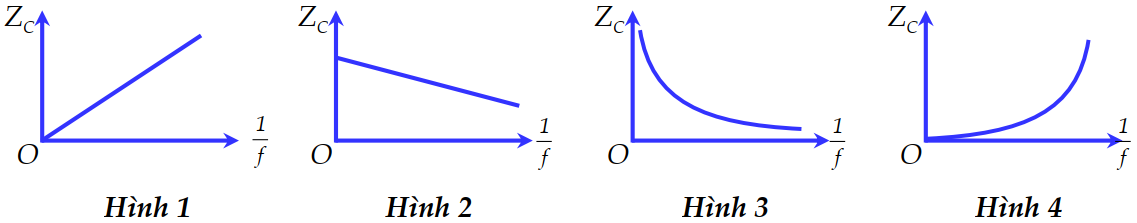 Đặt điện áp xoay chiều có tần số f vào hai đầu đoạn mạch chỉ có tụ điện có điện dung C. Đồ thị biểu diễn sự phụ thuộc của dung kháng \({Z_C}\) vào \(\dfrac{1}{f}\) là