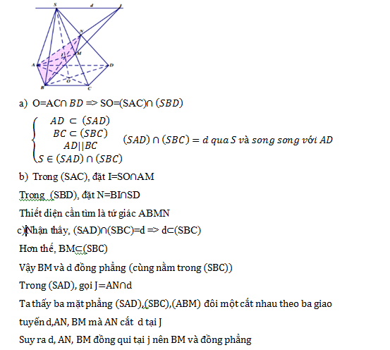 c) Gọi d là giao tuyến của hai mặt phẳng (SAD) và (SBC), chứng minh d và BM đồng phẳng.
