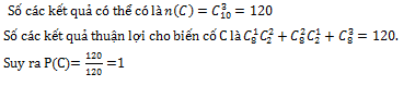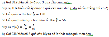 Một hộp kín chứa 2 quả cầu màu trắng và 8 quả cầu màu đen, các quả cầu chỉ khác nhau về màu sắc. Lấy ngẫu nhiên 3 quả từ hộp đã cho.