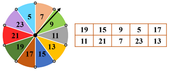 Thành và Phát cùng tham gia trò chơi vòng quay may mắn. Kết quả của 10 lần quay được ghi lại như sau:
