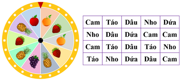 a) Có …… lần mũi tên dừng lại ở quả cam.