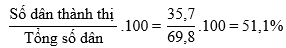Căn cứ bảng số liệu, cho biết nhận xét nào đúng về tỉ lệ dân thành thị của Thái Lan và In-đô-nê-xi-a?