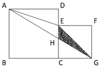 Dựa vào tỉ số \(\dfrac{{{S_{AEH}}}}{{{S_{GEH}}}} = \dfrac{{AD}}{{GC}}\) để tìm diện tích phần tô đậm.