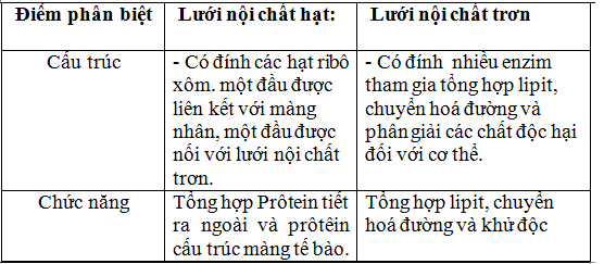 Phân biệt cấu trúc và chức năng của lưới nội chất hạt và lưới nội chất trơn?