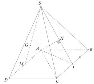 Cho hình chóp \(S.ABCD\) có đáy là hình thoi cạnh \(a,\,\,\angle ABC = {60^0}\) và \(SA\) vuông góc với