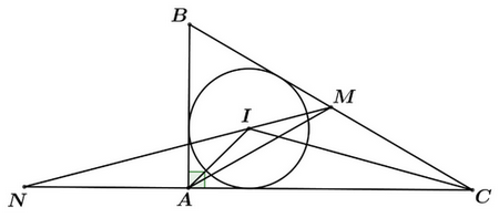 b. Gọi \(N\) là giao điểm của hai đường thẳng \(MI\) và \(AC\). Chứng minh rằng \(AB = AN\).
