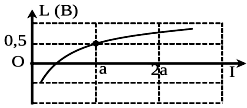 Hình bên là đồ thị biểu diễn sự phụ thuộc của mức độ âm L theo cường độ âm I. Cường