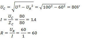 Mạch điện xoay chiều gồm điện trở thuần R nối tiếp tụ điện có ZC = 80Ω. Điện áp đặt vào hai đầu mạch có giá trị hiệu dụng 100V thì điện áp ở hai đầu điện trở là 60V. Giá trị của điện trở là: