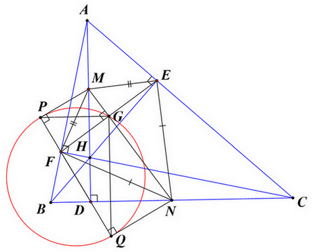 a) Chứng minh rằng \(\Delta MFN\) là tam giác vuông.