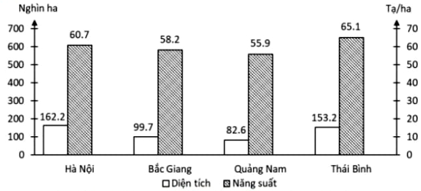 Cho biểu đồ: DIỆN TÍCH, NĂNG SUẤT GIEO TRỒNG LÚA CẢ NĂM CỦA MỘT SỐ TỈNH Ở NƯỚC TA, NĂM