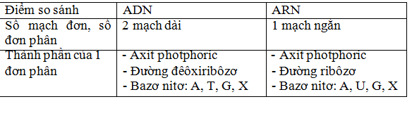 1.Trình bày sự khác nhau về cấu trúc giữa ARN với ADN?