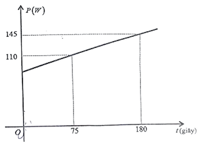 Chị Lan đun sôi nước bằng ấm điện. Biết rằng mối liên hệ giữa công suất hao phí \({\rm{P}}\left( {\rm{W}} \right)\) của âm điện và thời gian đun \(t\) (giây) được mô hình hóa bởi một hàm số bậc nhất có dạng \(P = at + b\) và có đồ thị như hình bên.