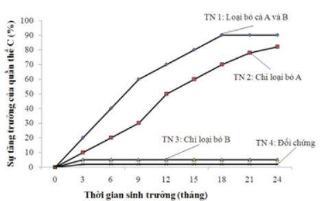 Thí nghiệm 3 (TN3): Loại bỏ loài B ra khỏi khu vực loài C sinh sống.