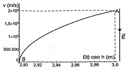 Hình bên là đồ thị tốc độ thay đổi theo độ cao của một electron chuyển động từ điểm đến điểm theo phương thẳng đứng trong điện trường của Trái Đất bỏ qua lực cản của không khí.