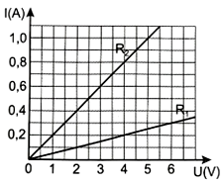 Hình bên là đồ thị biểu diễn sự phụ thuộc của cường độ dòng điện vào hiệu điện thế giữa hai đầu điện trở với hai điện trở R1 và R2.