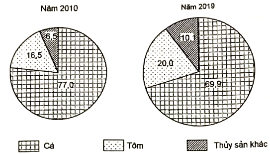 Cho biểu đồ về sản lượng thủy sản nuôi trồng nước ta năm 2010 và năm 2019: