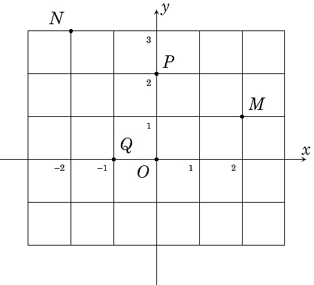 Xác định tọa độ các điểm \(M,\;N,\;P,\;Q\) trong hình.