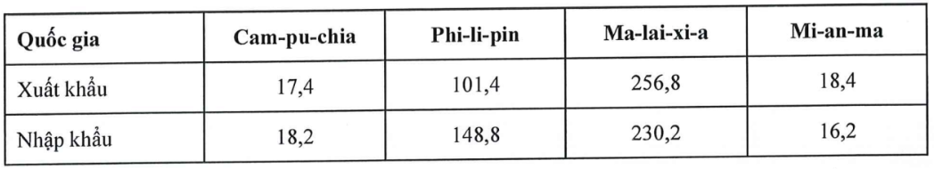 Cho bảng số liệu: XUẤT KHẨU, NHẬP KHẨU HÀNG HÓA VÀ DỊCH VỤ CỦA MỘT SỐ QUỐC GIA NĂM