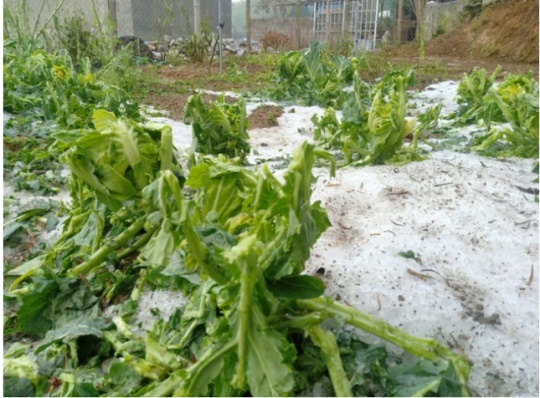 Với cây trồng hoặc hoa màu dễ bị nát dập, bạn có thể dựng giàn che dọc theo luống, và nên làm giàn dạng mái hình tam giác sẽ giúp giảm tác động của hạt mưa đá khi va chạm, đá sẽ rơi xuống hai bên luống cây mà không đâm thủng giàn che, chú ý dựng cọc chống phải chắc chắn.