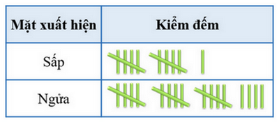 Từ bảng kiểm đếm, cho biết số lần mặt sấp xuất hiện nhiều hơn hay ít hơn mặt ngửa bao nhiêu lần?
