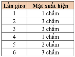 Bạn Minh gieo một con xúc xắc 6 lần và ghi lại kết quả trong bảng sau: