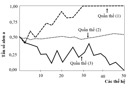 I. Tần số alen a của quần thể (3) biến động ít hơn so với quần thể (2).