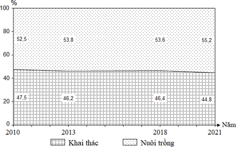 Từ biểu đồ trên, nội dung nào sau đây đúng hay sai về sản lượng thuỷ sản nước ta giai đoạn 2010 - 2021