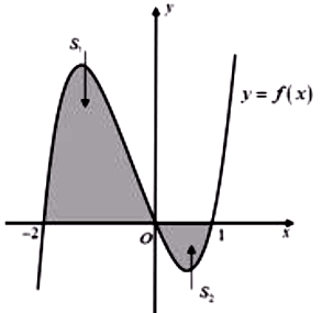 Cho hàm số bậc ba \(y = f\left( x \right)\) có đồ thị như hình vẽ. Gọi \({S_1}\) và \({S_2}\) lần