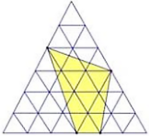 Hình vẽ dưới đây được tạo từ các hình tam giác đều bằng nhau. Biết diện tích của hình tam giác đều nhỏ nhất là 2 cm2. Tính diện tích hình tô đậm.
