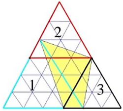 Hình tam giác to gồm 36 hình tam giác có diện tích 2 cm2.