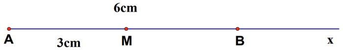 Trên tia \(Ax\), lấy hai điểm \(B\) và \(M\) sao cho \(AB = 6{\rm{\;cm}},AM = 3{\rm{\;cm}}\).