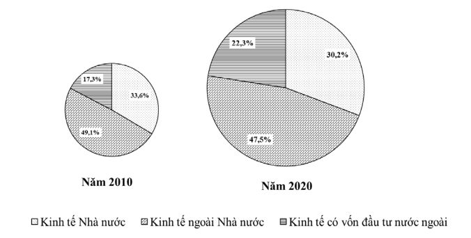 Nhận xét không đúng về sự thay đổi cơ cấu GDP phân theo thành phần kinh tế của nước ta năm 2010 và 2020 là tỉ trọng GDP thành phần kinh tế
