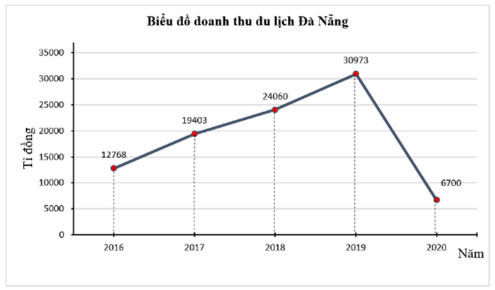 Quan sát biểu đồ tổng doanh thu đạt được của ngành du lịch Đà Nẵng .