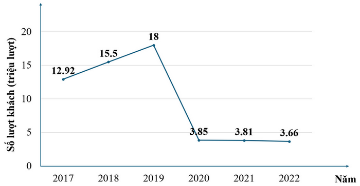 Dựa vào Biểu đồ đoạn thẳng biểu diễn số lượt khách du lịch quốc tế dến Việt Nam từ năm 2017 đến năm 2022.