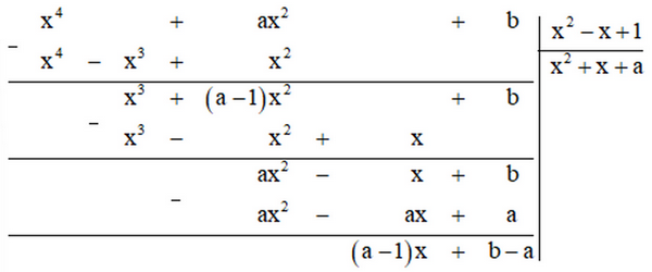 Xác định các hằng số a và b sao cho đa thức x4 + ax2 + b chia hết cho đa thức x2 – x + 1.