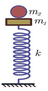 Một lò xo nhẹ có độ cứng 100 N/m đặt thẳng đứng, vật nhỏ m1 có khối lượng 250 g gắn ở