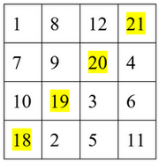 Cho bảng ô vuông có kích thước \(4 \times 4\) như hình sau:Mỗi ô trong bảng này được viết một